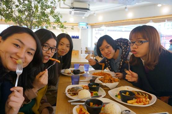赴釜山外国语大学交换的五位女生