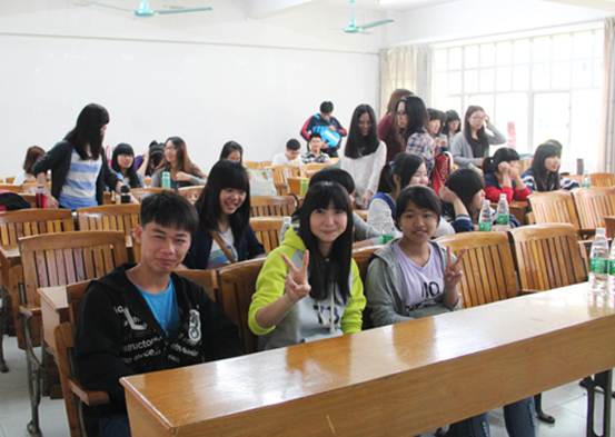 在见面交流会上,中文公司党委书记李和民致欢迎辞,拉开了活动的帷幕;紧接着,黄花中学的董事长梁振列、黄花中学员工代表陈海琪、公司员工代表林晓彬分别发表了讲话,表达了对本次的活动的祝福和期待。会后,各志愿者带上自己负责的员工到分配好的班级里上课,共同体验了如“市场营销”、“对外汉语教学法”等与中学截然不同的课程。黄花中学的一位同学说,大学的课很新鲜、挺有意思的,但一节课要连上一个多小时让她有点吃不消。下课后志愿者和同学们共进午餐,然后带领他们参观了广外校园,还特意进入图书馆,享受文化的熏陶。